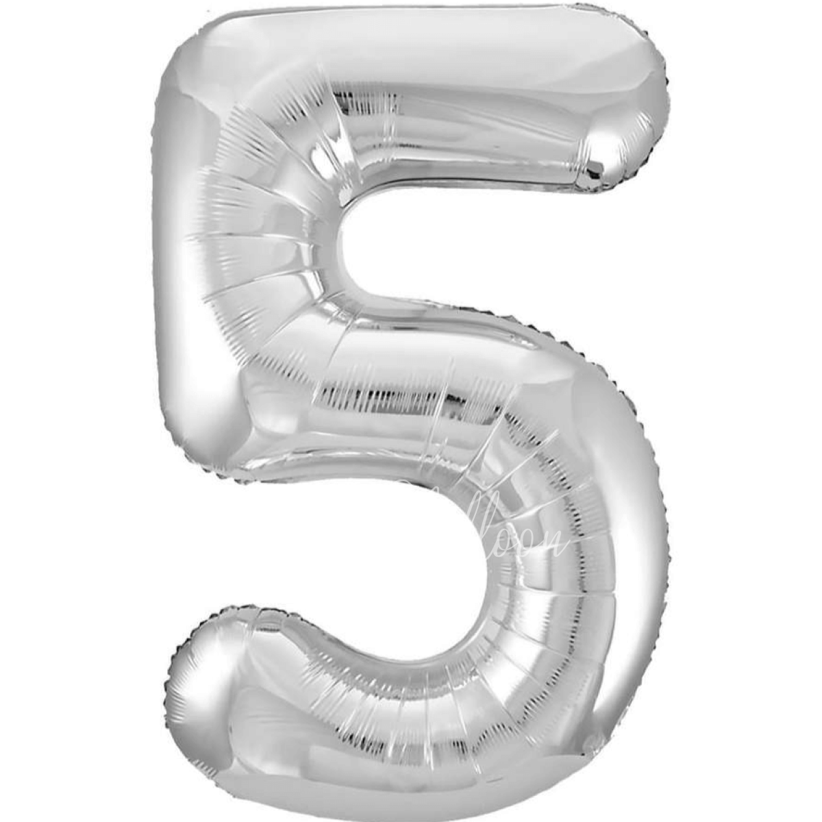 40" بالون هيليوم فويل الرقم 5 اللون فضي لامع